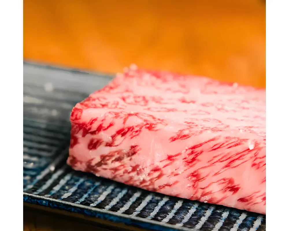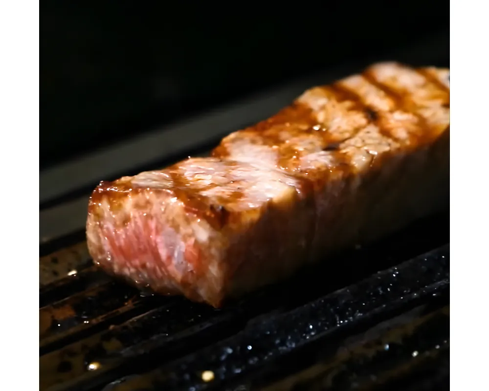 Le wagyu se distingue par son persillage naturel, créant un motif élégant dans la chair. Ce gras délicat fond à basse température, donnant à la viande une texture tendre, soyeuse et fondante.